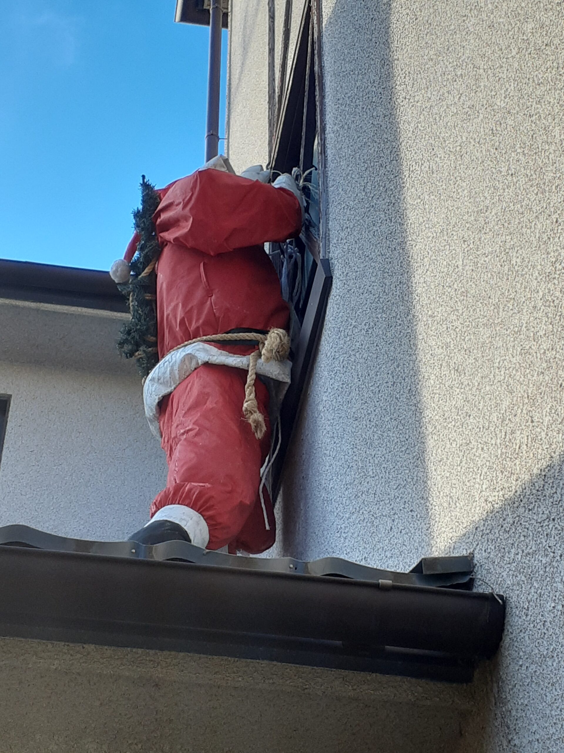 市川教会の2階の窓外には、へばりつく等身大サンタクロースが20年前に登場した。最初の年、深夜に泥棒と見間違えられパトカーが出動してきたという騒ぎがあったものの、その後は「恒例行事」として道行く人に(多分)愛される存在となってきた。サンタクロース登場後も、会堂外観は普段と変わらないままのクリスマスを過ごしてきた。「正しくクリスマスを伝えるには、教会を見せかけの華やかさで飾る必要はありません」などと、たいそうな主張を掲げての結果という訳ではないのだが、ある方に「クリスマスなのに教会の外が寂しすぎる」と言われた言葉に背を押され、ささやかだが10年程前から道路際にイルミネーションを飾り始めた。余り華美にならないように、そして「あら、教会にもクリスマスのイルミネーションがあるのね」と呟かれないように。何よりも、イルミネーションは「光の到来」を告げるものであって、クリスマスの主役ではないことを示したいからにほかならない。