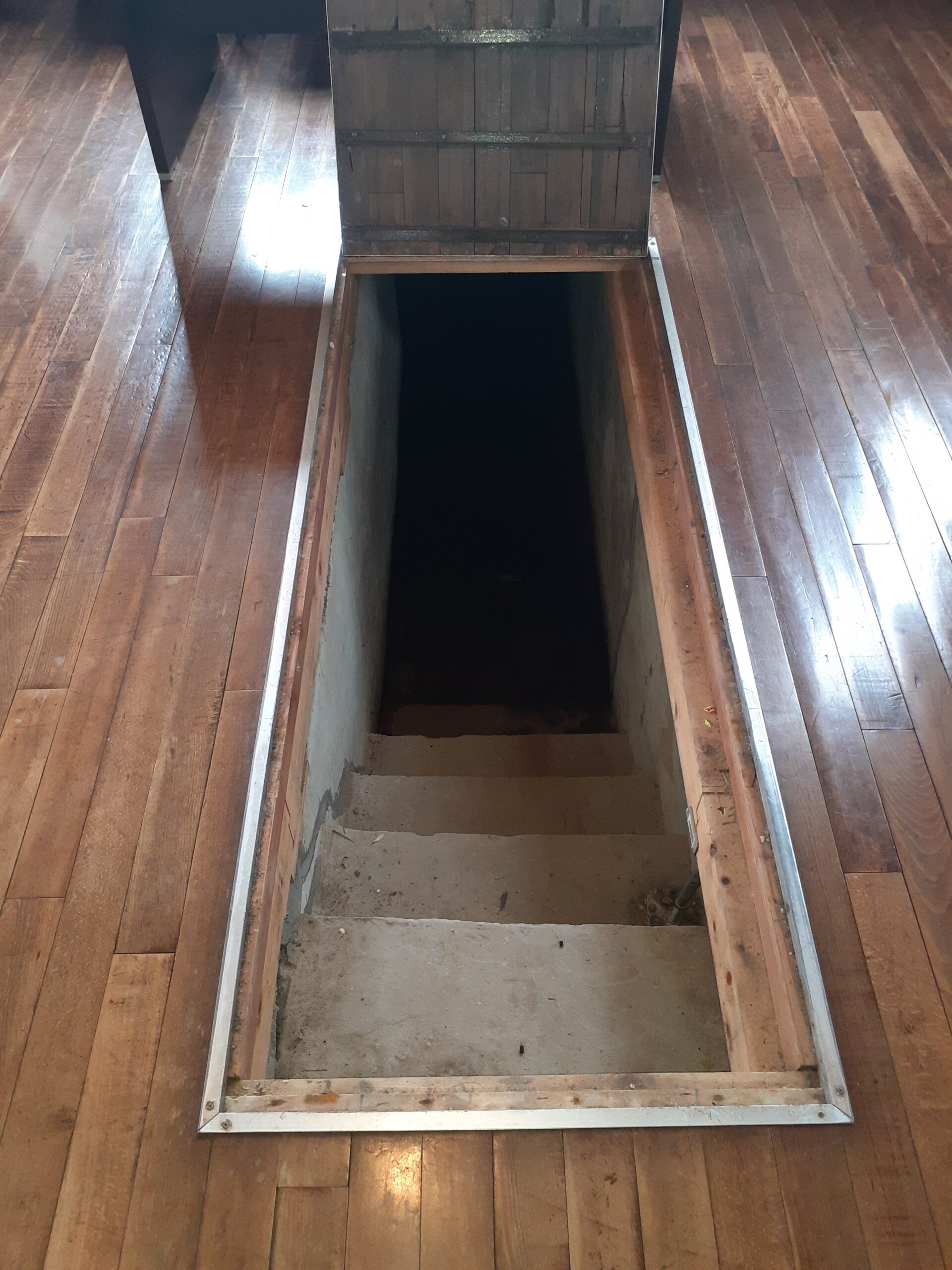 今年の3月末、卒園児たちが会堂にやってきた。毎年行っている「卒園児教会探検」のためである。今年はコロナ禍の影響もあって教会に来る機会が少なかったので、記憶に留めて欲しいと願いつつ子どもたちを迎えた。聖壇下の床下に潜り、外から眺めるだけだった会堂の鐘撞堂(かねつきどう)に上り、元気な子は梯子でしか上がれない鐘撞堂の4階に行き外の景色を楽しむ。最後に会堂後方の床板を2か所開ける。するとコンクリートの階段が目に入るが、階段途中からは沁み出た地下水が溢れているので、その先に何があるのか分からない。まさに「秘密の部屋」の存在に子どもたちも興味津々、床板に座り込んで覗き込む。「これはボウクウゴウだよ」と説明するも理解できないようだったので、「今、ウクライナというところで戦争があって、みんながシェルターに避難しているでしょう。あれと同じだよ」と言葉を足してあげたとたん、子どもたちの顔が真剣になった。